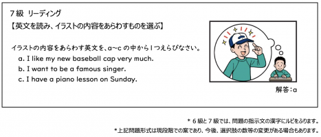 2026年度英検情報第二弾です! 2026年度3回目からの実施が発表されている7級6級について、また問題形式の公開がありました。 6級リスニング 7級リーディング の問題サンプルを見てみましょう。